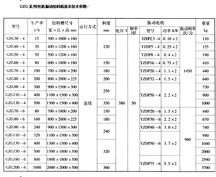 GZG系列電機(jī)振動(dòng)給料機(jī)基本技術(shù)參數(shù)